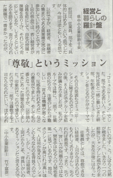 竹下富彦会員の「尊敬というミッション」が掲載されました。