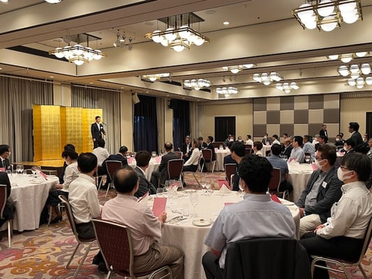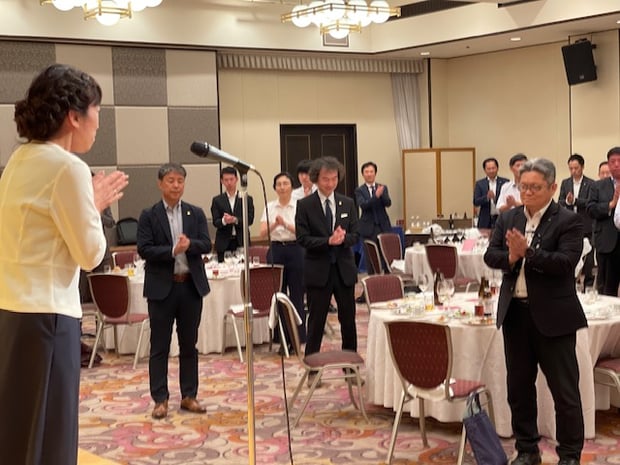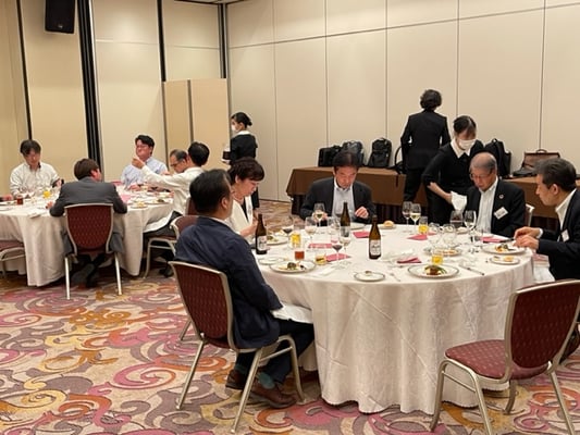 会場を大和の間に移動し、懇親会を行いました。前阪専務理事は総会で中座されましたが、他の来賓者5名は懇親会にもご参加いただきました。